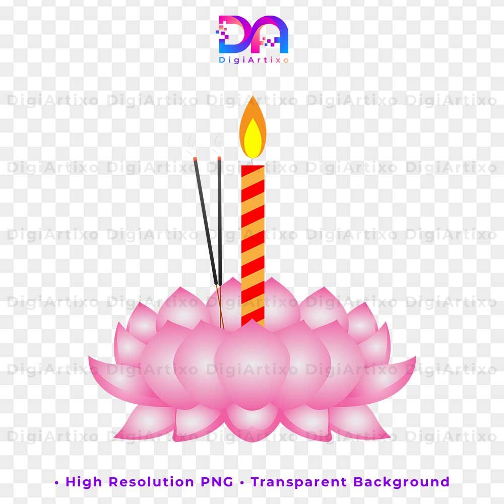 πCandle and incense sticks on a lotus | Transparent Background | High-Quality Digital Download | Instant Download