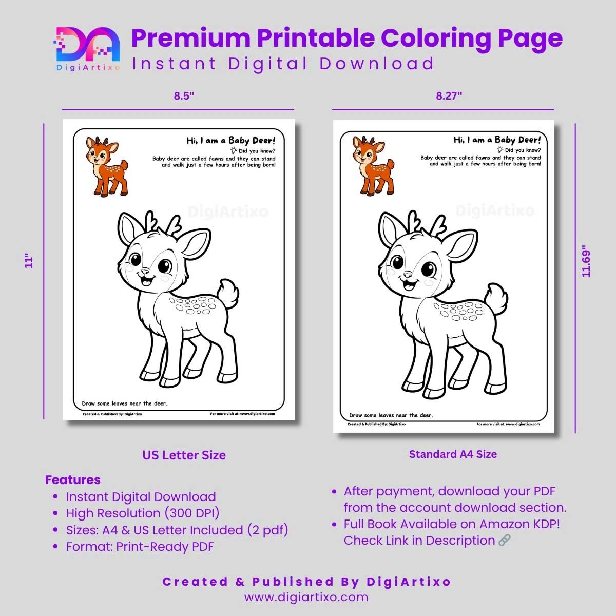 ✔ 1 Cute Baby Deer Coloring Page ✔ 1 Fun Fact 💡 ✔ 1 Simple Activity for Kids (learning + fun together)