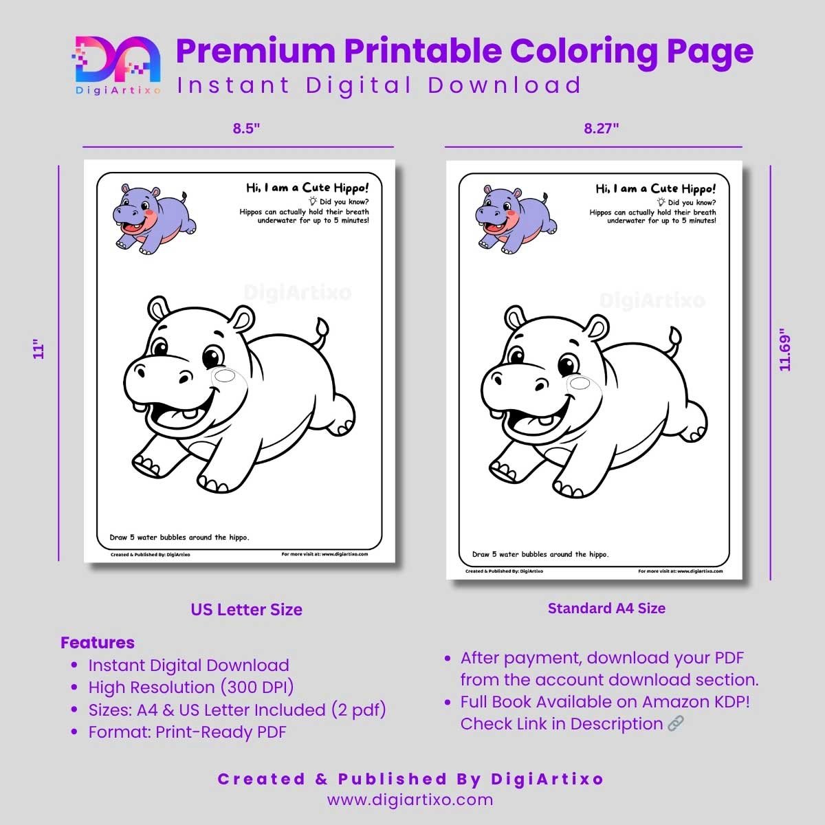 ✔ This adorable Cute Baby Hippo Coloring Page Printable PDF is perfect for kids who love cute and simple designs ✔ Carefully designed with bold outlines and easy shapes, so children can enjoy coloring without frustration and stay engaged longer 😊