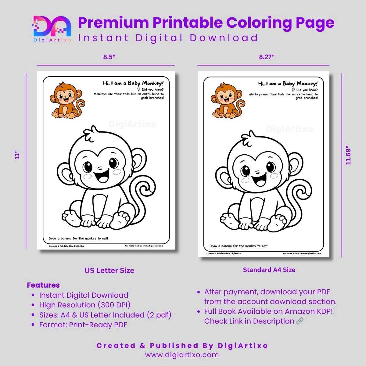 ✔ This adorable Cute Baby Monkey Coloring Page Printable PDF is perfect for kids who love cute and simple designs ✔ Carefully designed with bold outlines and easy shapes, so children can enjoy coloring without frustration and stay engaged longer 😊