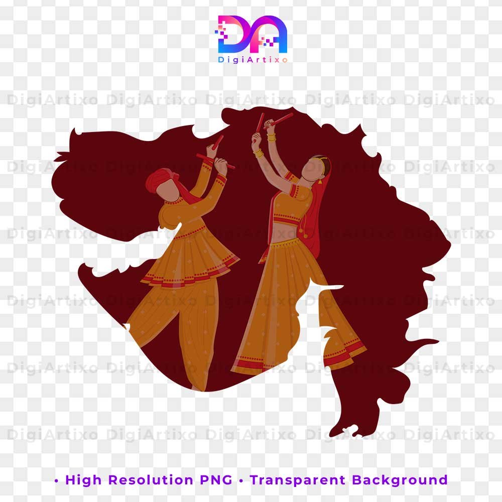 πGarba dance couple with gujarat map | Transparent Background | High-Quality Digital Download | Instant Download